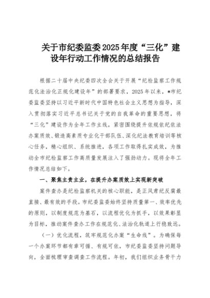 【七哥公文】2025年:关于市纪委监委2025年度“三化”建设年行动工作情况的总结报告+更多免费公文+VX:QiGeGongWen2024