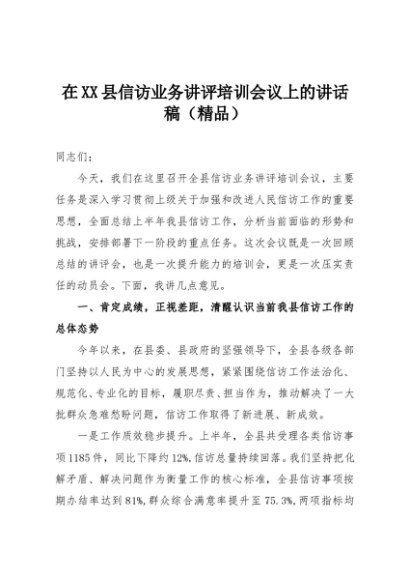 / 【七哥公文】2025年:在XX县信访业务讲评培训会议上的讲话稿(精品)+更多免费公文+VX:QiGeGongWen2024