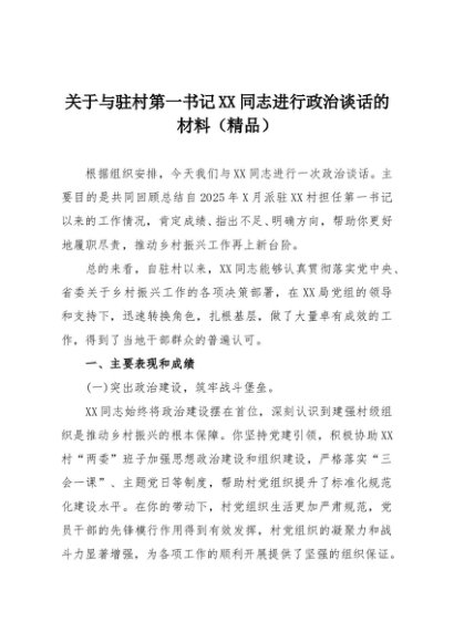/ 【七哥公文】2025年:关于与驻村第一书记XX同志进行政治谈话的材料(精品)+更多免费公文+VX:QiGeGongWen2024