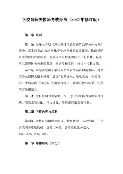 【七哥公文】2025年:学校音体美教师考核办法(2025年修订版)+更多免费公文+VX:QiGeGongWen2024