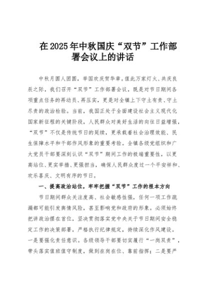 / 【七哥公文】2025年:在2025年中秋国庆“双节”工作部署会议上的讲话+更多免费公文+VX:QiGeGongWen2024
