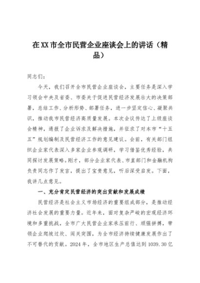 / 【七哥公文】2025年:在XX市全市民营企业座谈会上的讲话(精品)+更多免费公文+VX:QiGeGongWen2024