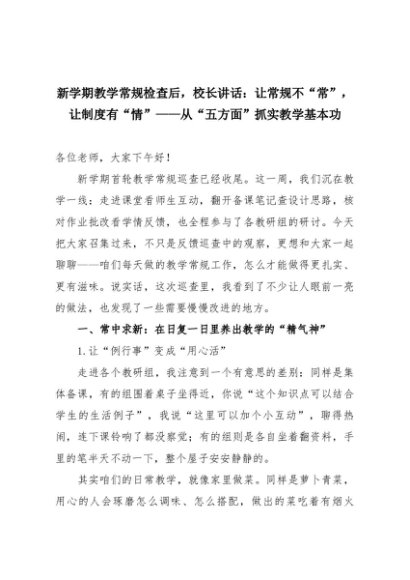 【七哥公文】2025年:新学期教学常规检查后,校长讲话:让常规不“常”,让制度有“情”——从“五方面”抓实教学基本功+更多免费公文+VX:QiGeGongWen2024