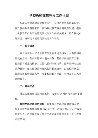 / 【七哥公文】2025年:学校教师交流轮岗工作计划+更多免费公文+VX:QiGeGongWen2024