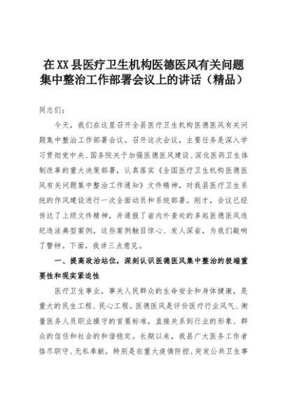 【七哥公文】2025年:在XX县医疗卫生机构医德医风有关问题集中整治工作部署会议上的讲话(精品)+更多免费公文+VX:QiGeGongWen2024