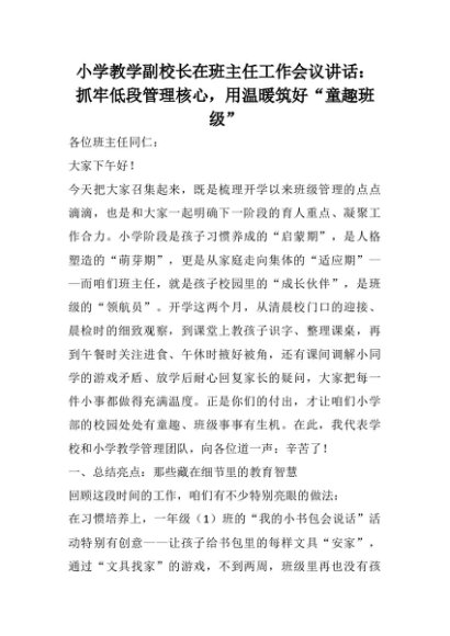 【七哥公文】2025年:小学教学副校长在班主任工作会议讲话:抓牢低段管理核心,用温暖筑好“童趣班级+更多免费公文+VX:QiGeGongWen2024