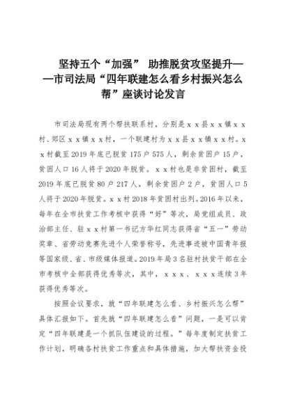 【七哥公文】2025年:坚持五个“加强” 助推脱贫攻坚提升——市司法局“四年联建怎么看乡村振兴怎么帮”座谈讨论发言+更多免费公文+VX:QiGeGongWen2024