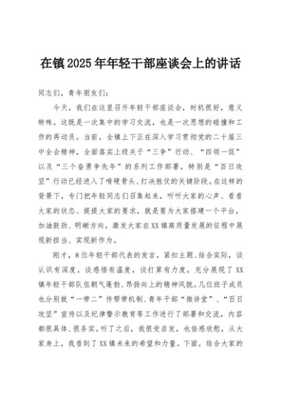 / 【七哥公文】2025年:在镇2025年年轻干部座谈会上的讲话+更多免费公文+VX:QiGeGongWen2024