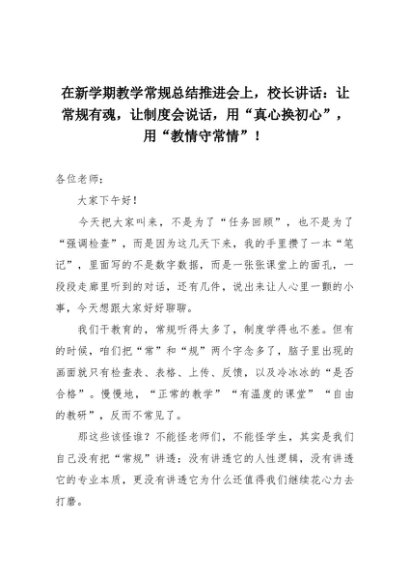 【七哥公文】2025年:在新学期教学常规总结推进会上,校长讲话:让常规有魂,让制度会说话,用“真心换初心”,用“教情守常情”!+更多免费公文+VX:QiGeGongWen2024