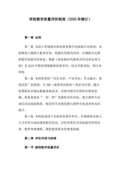 / 【七哥公文】2025年:学校教学质量评价制度(2025年修订)+更多免费公文+VX:QiGeGongWen2024