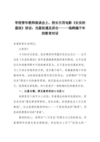 【七哥公文】2025年:学校青年教师座谈会上,校长引用电影《长安的荔枝》讲话:当荔枝遇见讲台——一场跨越千年的教育对话+更多免费公文+VX:QiGeGongWen2024