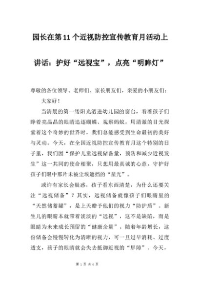 【七哥公文】2025年:园长在第11个近视防控宣传教育月活动上讲话:护好“远视宝”,点亮“明眸灯”+更多免费公文+VX:QiGeGongWen2024