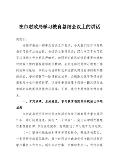 / 【七哥公文】2025年:在市财政局学习教育总结会议上的讲话+更多免费公文+VX:QiGeGongWen2024