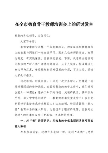 / 【七哥公文】2025年:在全市德育骨干教师培训会上的研讨发言+更多免费公文+VX:QiGeGongWen2024