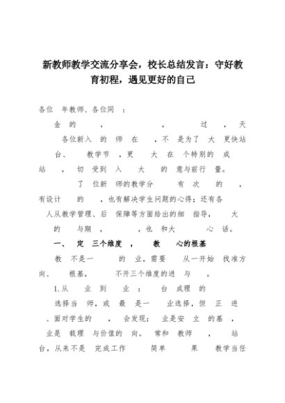 【七哥公文】2025年:新教师教学交流分享会,校长总结发言:守好教育初程,遇见更好的自己+更多免费公文+VX:QiGeGongWen2024
