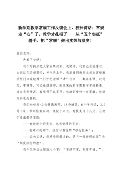 【七哥公文】2025年:新学期教学常规工作反馈会上,校长讲话:常规走“心”了,教学才扎根了——从“五个实抓”着手,把“常规”做出实效与温度!+更多免费公文+VX:QiGeGongWen2024