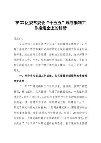 【七哥公文】2025年:在XX区委常委会“十五五”规划编制工作推进会上的讲话+更多免费公文+VX:QiGeGongWen2024