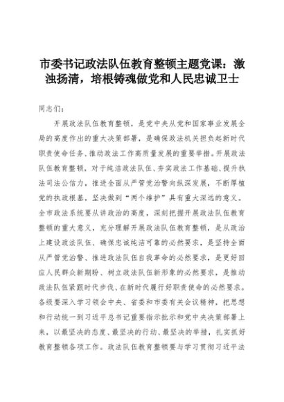 【七哥公文】2025年:市委书记政法队伍教育整顿主题党课:激浊扬清,培根铸魂做党和人民忠诚卫士+更多免费公文+VX:QiGeGongWen2024