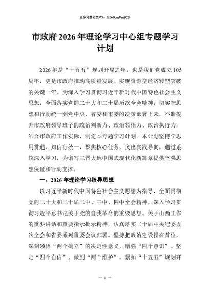 【七哥公文】2026年:市政府2026年理论学习中心组专题学习计划+更多免费公文+VX:QiGeGongWen2024 - 七哥-AI智库