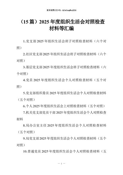 【七哥公文】2026年:(15篇)2025年度组织生活会对照检查材料等汇编+更多免费公文+VX:QiGeGongWen2024