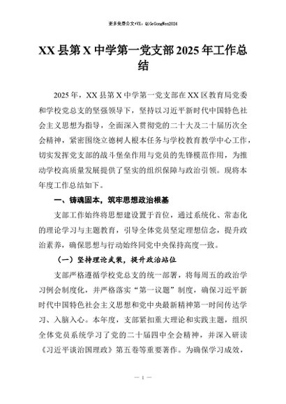 / 【七哥公文】2026年:XX县第X中学第一党支部2025年工作总结+更多免费公文+VX:QiGeGongWen2024