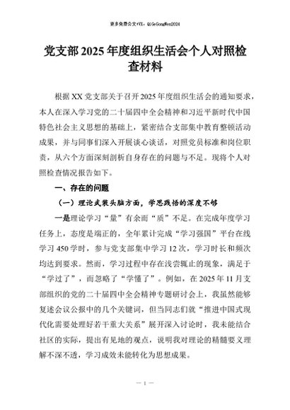 【七哥公文】2026年:党支部2025年度组织生活会个人对照检查材料+更多免费公文+VX:QiGeGongWen2024