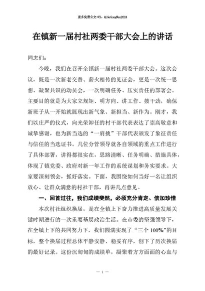 / 【七哥公文】2026年:在镇新一届村社两委干部大会上的讲话+更多免费公文+VX:QiGeGongWen2024