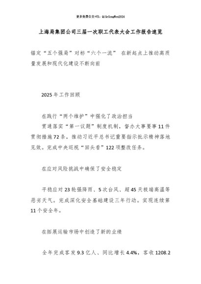 / 【七哥公文】2026年:上海局集团公司三届一次职工代表大会工作报告速览+更多免费公文+VX:QiGeGongWen2024