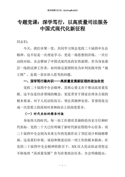 【七哥公文】2026年:专题党课:深学笃行,以高质量司法服务中国式现代化新征程+更多免费公文+VX:QiGeGongWen2024 - 七哥-AI智库