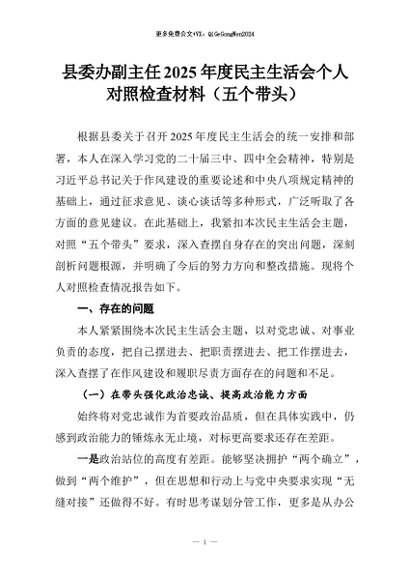 【七哥公文】2026年:县委办副主任2025年度民主生活会个人对照检查材料(五个带头)+更多免费公文+VX:QiGeGongWen2024
