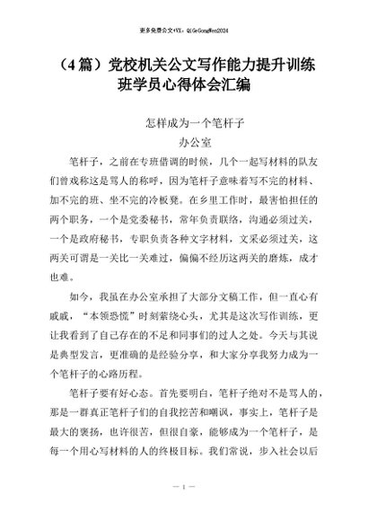 【七哥公文】2026年:(4篇)党校机关公文写作能力提升训练班学员心得体会汇编+更多免费公文+VX:QiGeGongWen2024