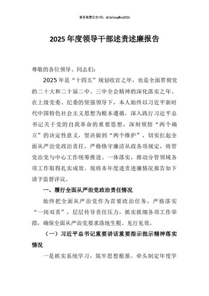 / 【七哥公文】2026年:2025年度领导干部述责述廉报告+更多免费公文+VX:QiGeGongWen2024
