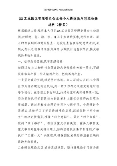 【七哥公文】2026年:XX工业园区管理委员会主任个人提拔任用对照检查材料(精品)_副本+更多免费公文+VX:QiGeGongWen2024