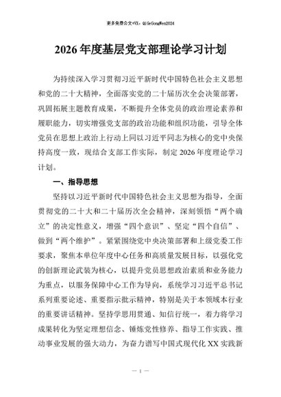 / 【七哥公文】2026年:2026年度基层党支部理论学习计划+更多免费公文+VX:QiGeGongWen2024