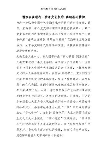 / 【七哥公文】2026年:渭滨农商银行:传承文化根脉 赓续奋斗精神_副本+更多免费公文+VX:QiGeGongWen2024