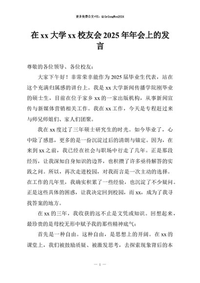 / 【七哥公文】2026年:在xx大学xx校友会2025年年会上的发言+更多免费公文+VX:QiGeGongWen2024