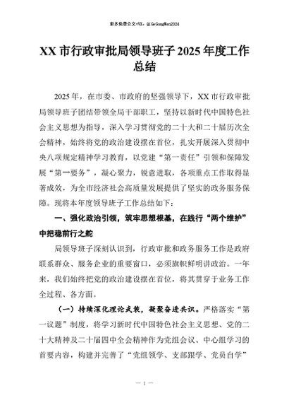 / 【七哥公文】2026年:XX市行政审批局领导班子2025年度工作总结+更多免费公文+VX:QiGeGongWen2024