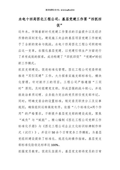 【七哥公文】2026年:水电十四局西北工程公司:基层党建工作要“四抓四促”_副本+更多免费公文+VX:QiGeGongWen2024 - 七哥-AI智库