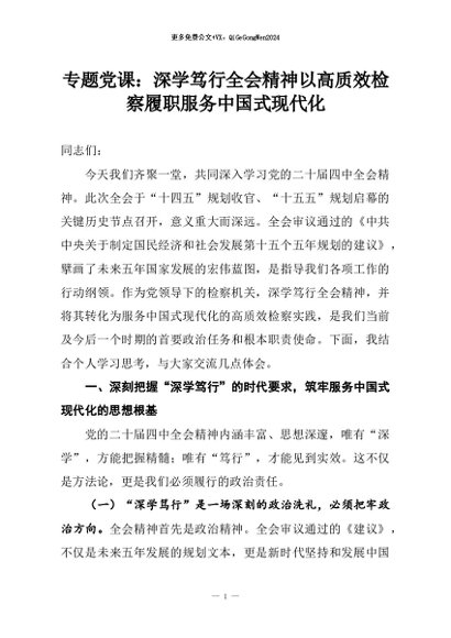 【七哥公文】2026年:专题党课:深学笃行全会精神以高质效检察履职服务中国式现代化+更多免费公文+VX:QiGeGongWen2024 - 七哥-AI智库