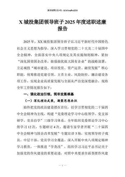 / 【七哥公文】2026年:X城投集团领导班子2025年度述职述廉报告+更多免费公文+VX:QiGeGongWen2024