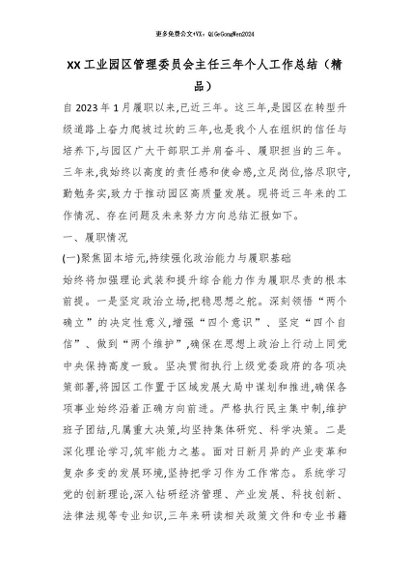【七哥公文】2026年:XX工业园区管理委员会主任三年个人工作总结(精品)_副本+更多免费公文+VX:QiGeGongWen2024 - 七哥-AI智库