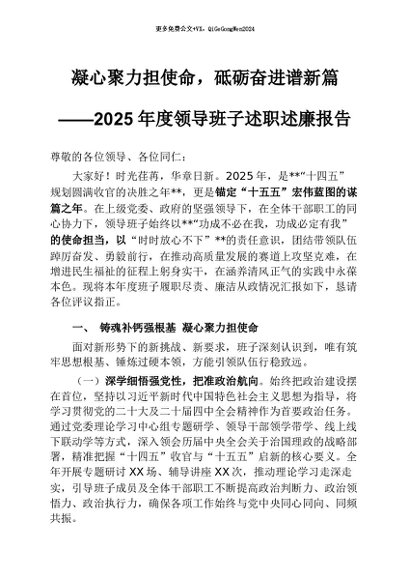 【七哥公文】2026年:2025年度领导班子述职述廉报告:凝心聚力担使命,砥砺奋进谱新篇(1)+更多免费公文+VX:QiGeGongWen2024