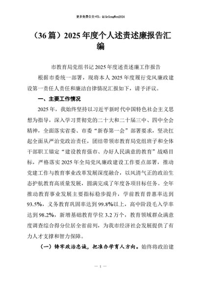 【七哥公文】2026年:(36篇)2025年度个人述责述廉报告汇编+更多免费公文+VX:QiGeGongWen2024 - 七哥-AI智库