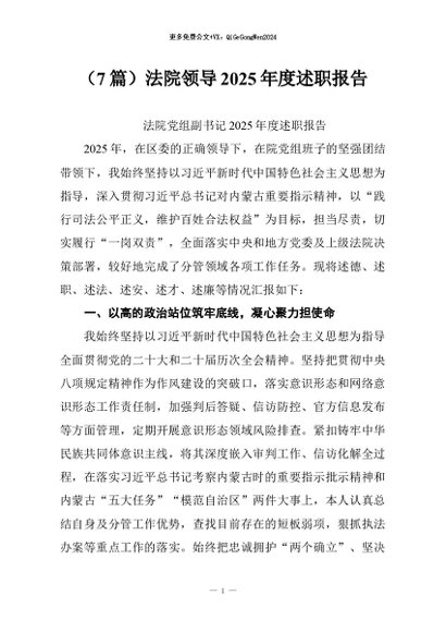 / 【七哥公文】2026年:(7篇)法院领导2025年度述职报告+更多免费公文+VX:QiGeGongWen2024