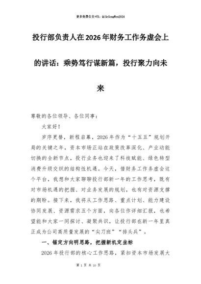 【七哥公文】2026年:投行部负责人在2026年财务工作务虚会上的讲话:乘势笃行谋新篇,投行聚力向未来+更多免费公文+VX:QiGeGongWen2024
