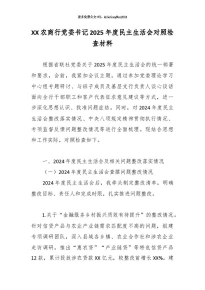 【七哥公文】2026年:XX农商行党委书记2025年度民主生活会对照检查材料_副本+更多免费公文+VX:QiGeGongWen2024