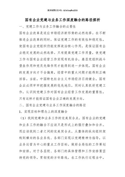 / 【七哥公文】2026年:国有企业党建与业务工作深度融合的路径探析_副本+更多免费公文+VX:QiGeGongWen2024