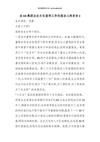 【七哥公文】2026年:在XX集团企业文化宣传工作交流会上的发言2_副本+更多免费公文+VX:QiGeGongWen2024