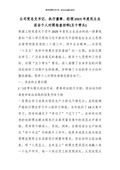 【七哥公文】2026年:公司党总支书记、执行董事、经理2025年度民主生活会个人对照检查材料(五个带头)_副本+更多免费公文+VX:QiGeGongWen2024