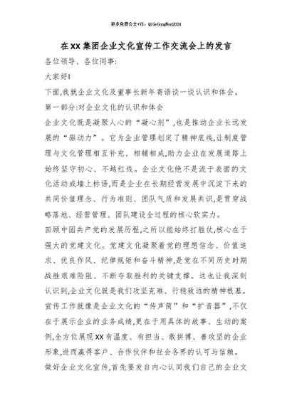 / 【七哥公文】2026年:在XX集团企业文化宣传工作交流会上的发言_副本+更多免费公文+VX:QiGeGongWen2024